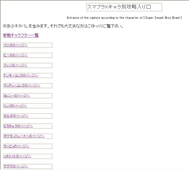 そこのコンテンツのXキャラ別情報。